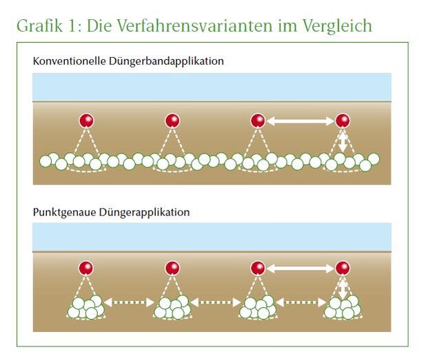 Stickstoff versorgen und somit eine zügige Entwicklung ermöglichen. Aber das Verfahren lässt sich weiter optimieren: Statt im Band kann der Dünger punktgenau abgelegt werden. Wir haben seit 2016 untersucht, was das bringt. Die Ergebnisse sind vielversprechend.