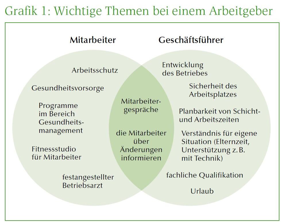 Mitarbeiter großen Wert auf das Thema Gesundheit legen, während die Geschäftsführung diesem Punkt weniger Bedeutung beimisst.
