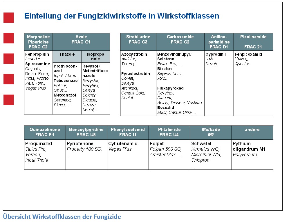 Neu im Getreide steht der Wirkstoff Kaliumphosphonat in Formulierung mit dem klassischen Prothioconazol im Produkt Firuza mit 2,0 l/ha zur Verfügung. In dieser Kombination sollen die Resistenzen beim Prothioconazol reduziert und ein Mehrwert durch einen Wirkstoff erzielt werden, der eher aus dem Weinbau bekannt ist.
