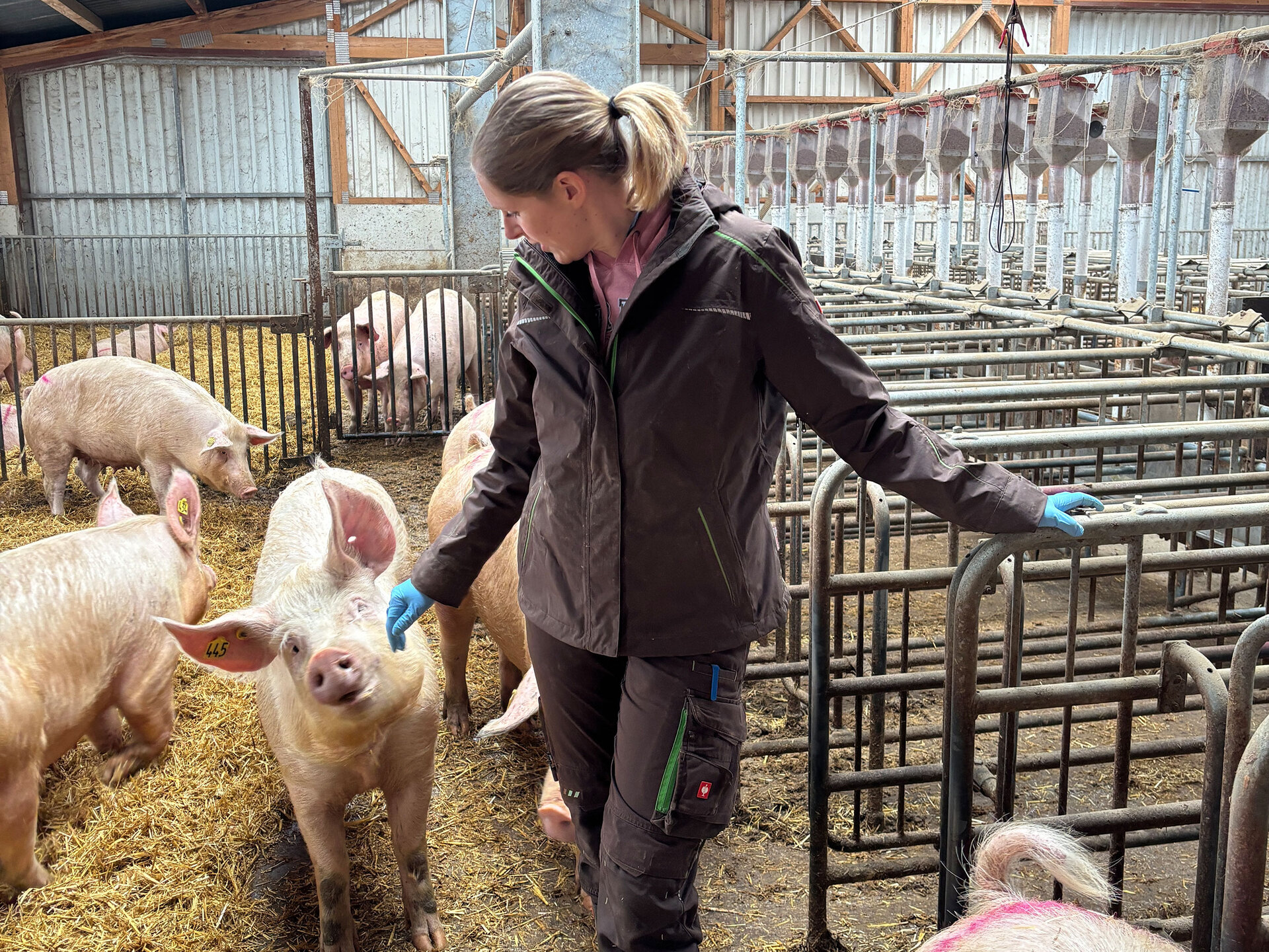 Den zusätzlichen Arbeitsaufwand schätzt sie auf 0,6 Stunden pro Sau und Jahr. Darin enthalten sind Stroheinfuhr, Einstreuen, Misten und etwas zusätzlicher Zeitaufwand für die Tierkontrolle und das Abschieben des Laufgangs hinter den Ständen.