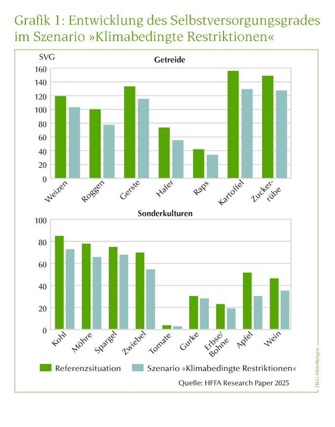 Eine Studie der HFFA Research GmbH quantifiziert, wie stark sich klimatische Veränderungen und der Wegfall von Pflanzenschutzwirkstoffen auf die Selbstversorgung mit wichtigen Agrar- und Sonderkulturen auswirken könnten. Die Ergebnisse zeigen: Während sich die Klimarisiken über längere Zeiträume schleichend manifestieren, kann die regulatorische Verknappung unmittelbar zu massiven Produktionseinbrüchen führen.