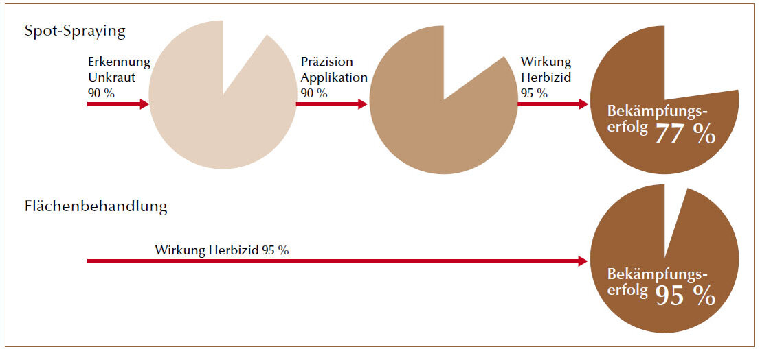 Der teilflächenspezifische Einsatz von Herbiziden verspricht hohe Einsparpotentiale und ist, sofern keine Wirkungs- und Ertragsverluste entstehen, auch als nachhaltig zu betrachten. Grundvoraussetzung für das Spot-Spraying-Verfahren ist die sichere Erkennung von Unkrautpflanzen (Detektion), anschließend die sichere Benetzung mit Herbiziden (Applikation) aber grundsätzlich auch überhaupt die Verfügbarkeit wirksamer blattaktiver Herbizide (Wirksamkeit).