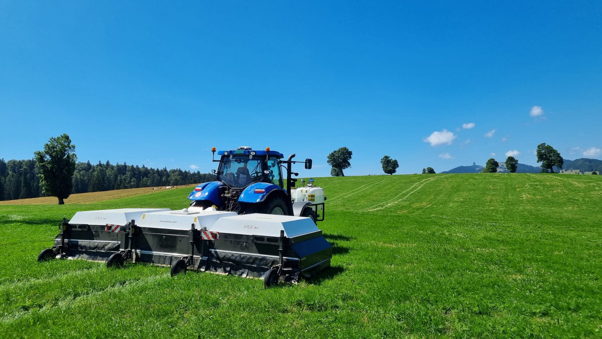 Das Anhängegerät ARA vom Schweizer Hersteller ecorobotix spritzt mit einer Präzision von 6 x 6 cm (Spot-Applikation) und arbeitet dabei auf einer Breite von bis zu 6,2 m und mit einer Geschwindigkeit von bis zu 7,2 km/h. Eine der ersten Einsätze war die Ampfer- und Distelbekämpfung auf Grünland.